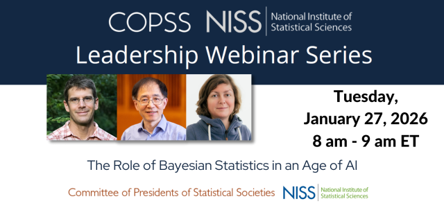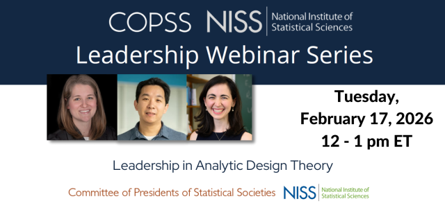 COPSS & NISS hosted a webinar on leadership and professional societies featuring speakers Dr. Paul Albert, ... more